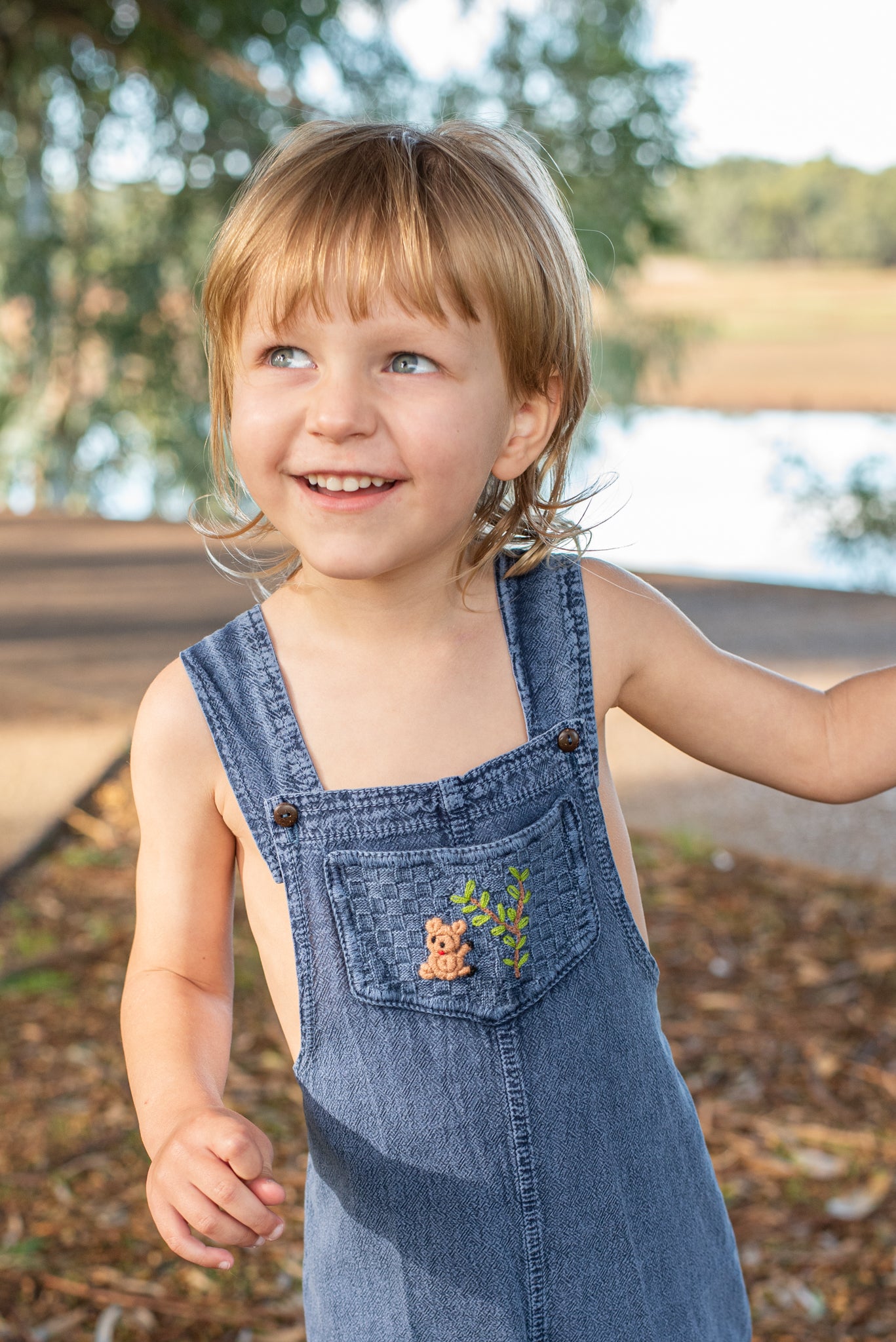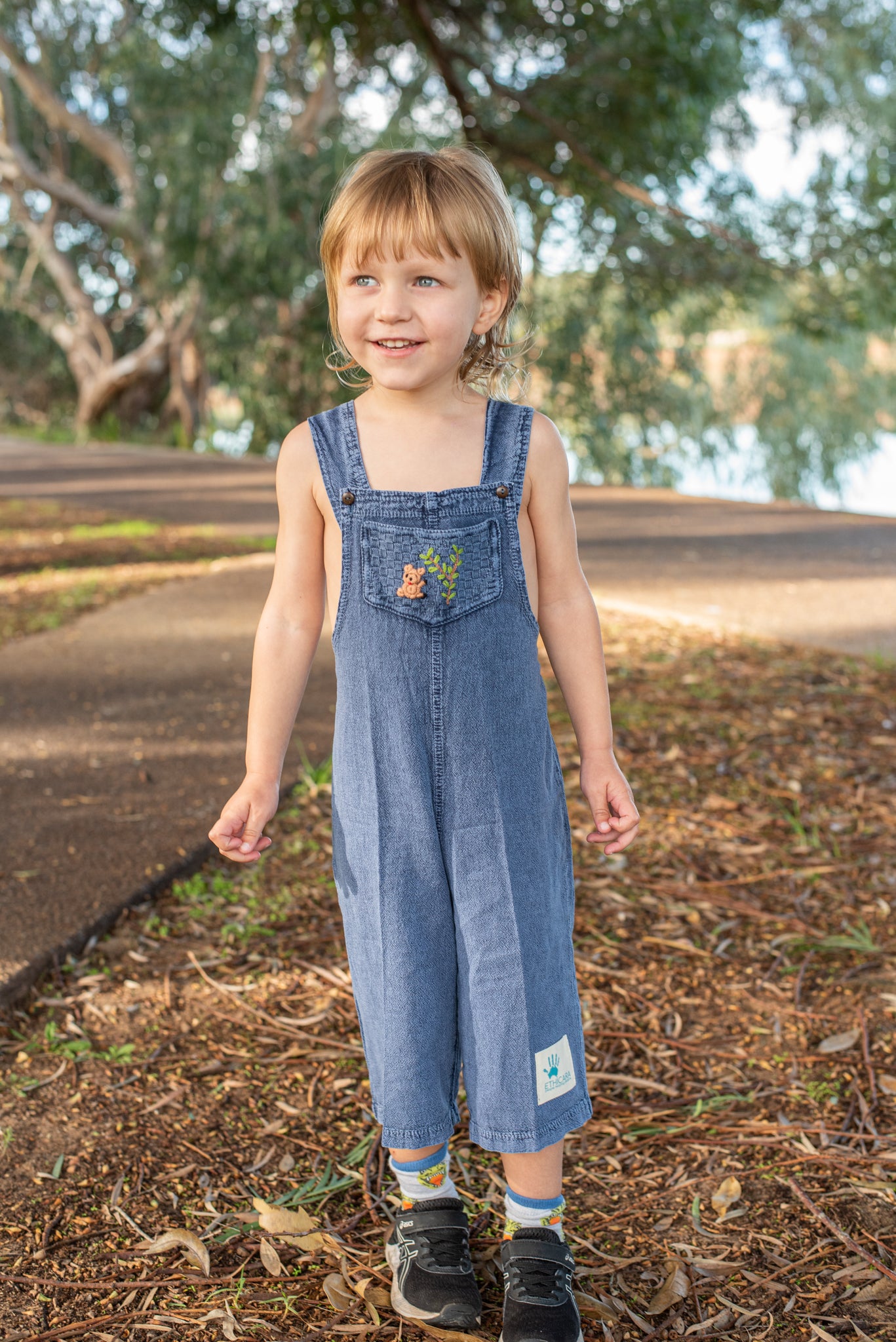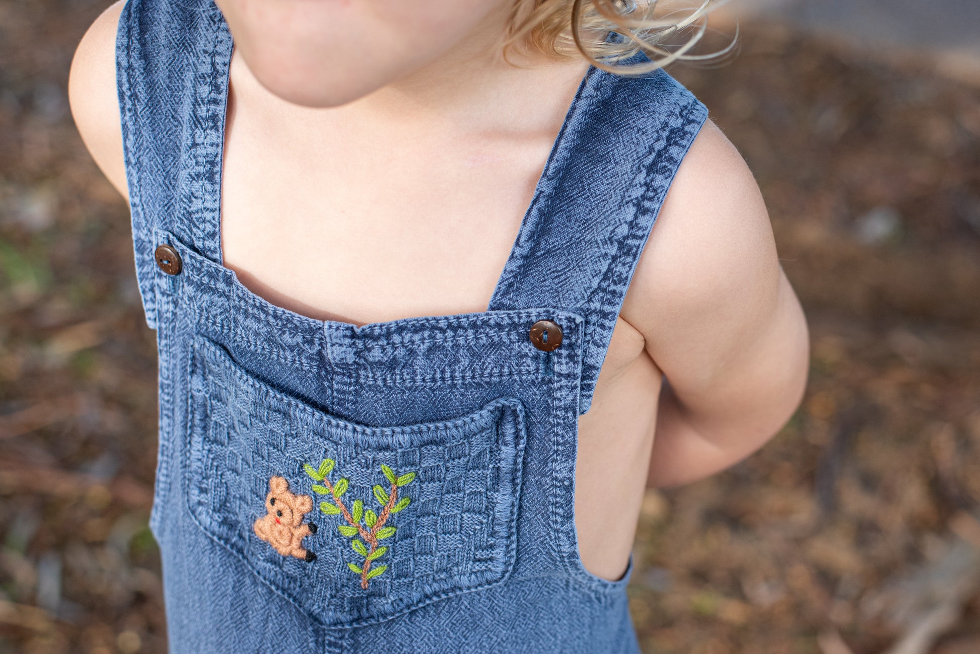 The Koala Jumpsuit is her armor for conquering jungles (real or imagined). The playful koala scrambling up the bodice mirrors her own determination, whether sheās mastering monkey bars or ārescuingā stuffed animals from ādangerousā heights. Snap closures make quick changes a breeze.