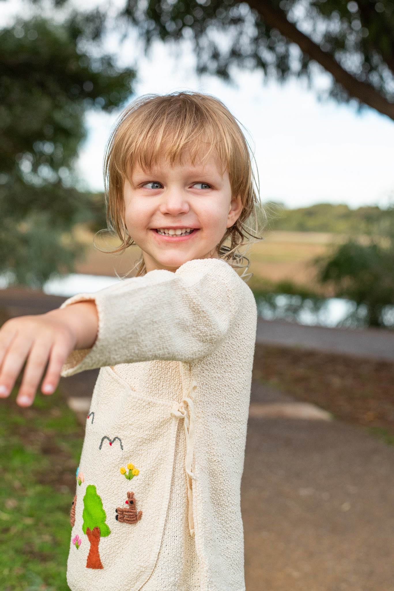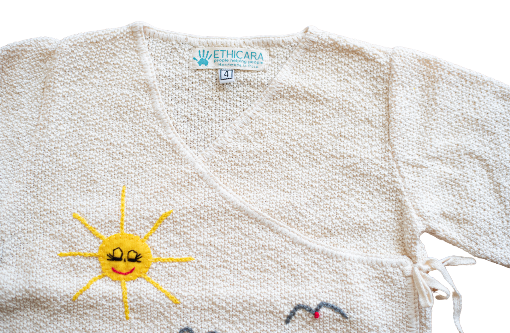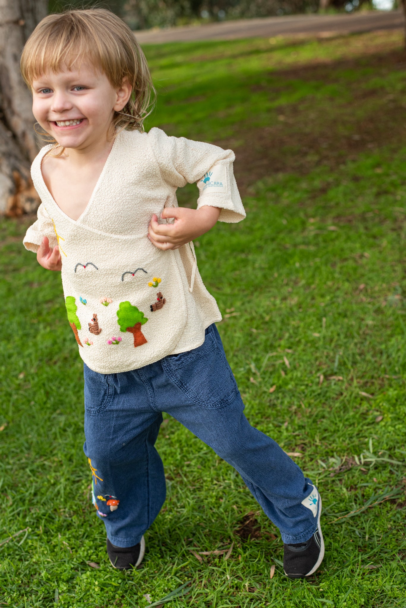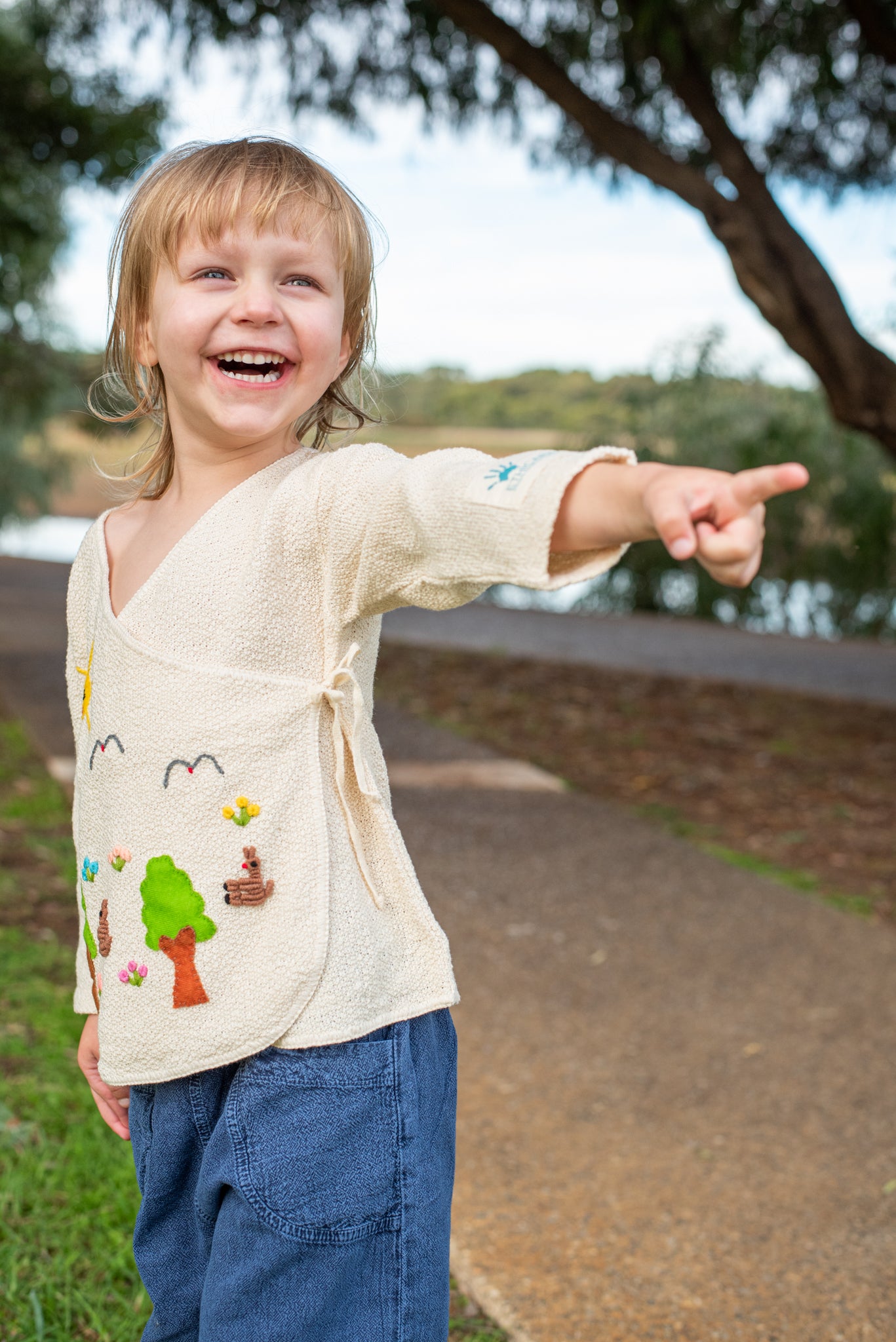 For little explorers and storybook heroes, the Alex (Forest) side tie cardigan is a passport to the magic of the bush. Every stitch tells an Aussie adventure: Koalas peek from ancient eucalyptus branches, kangaroos pause mid-bound, and emus dart through native bushes, all under a hand-stitched golden sky. This play-ready (or adventure-ready!) top is breathable for log-climbing missions and sturdy enough for leaf-collecting expeditions. Light as dappled sunlight for nestling in ferns, it's hand-stitched by Peruvian artisans to honor both wild places and wild imaginations.