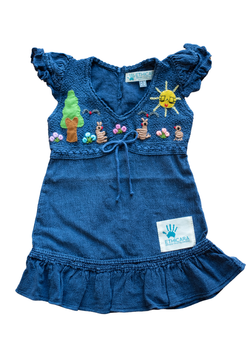 The Magui (Forest) ruffled cotton dress is where comfort meets pure enchantment! Imagine your little one twirling through sun-dappled glades, the soft ruffles dancing with every step, guided by her hand-stitched Australian animal friends – a curious koala here, a hopping kangaroo there. This delightful dress, with its playful front ribbon, is designed for unrestricted joy, from climbing trees (with supervision, of course!) to whispering secrets to the wildflowers. Crafted from our signature breathable Peruvian cotton, it’s so soft and light, she’ll forget she’s even wearing it – perfect for sunny adventures. Each stitch celebrates the patient artistry of Peruvian hands, bringing the magic of the bush right to her wardrobe.