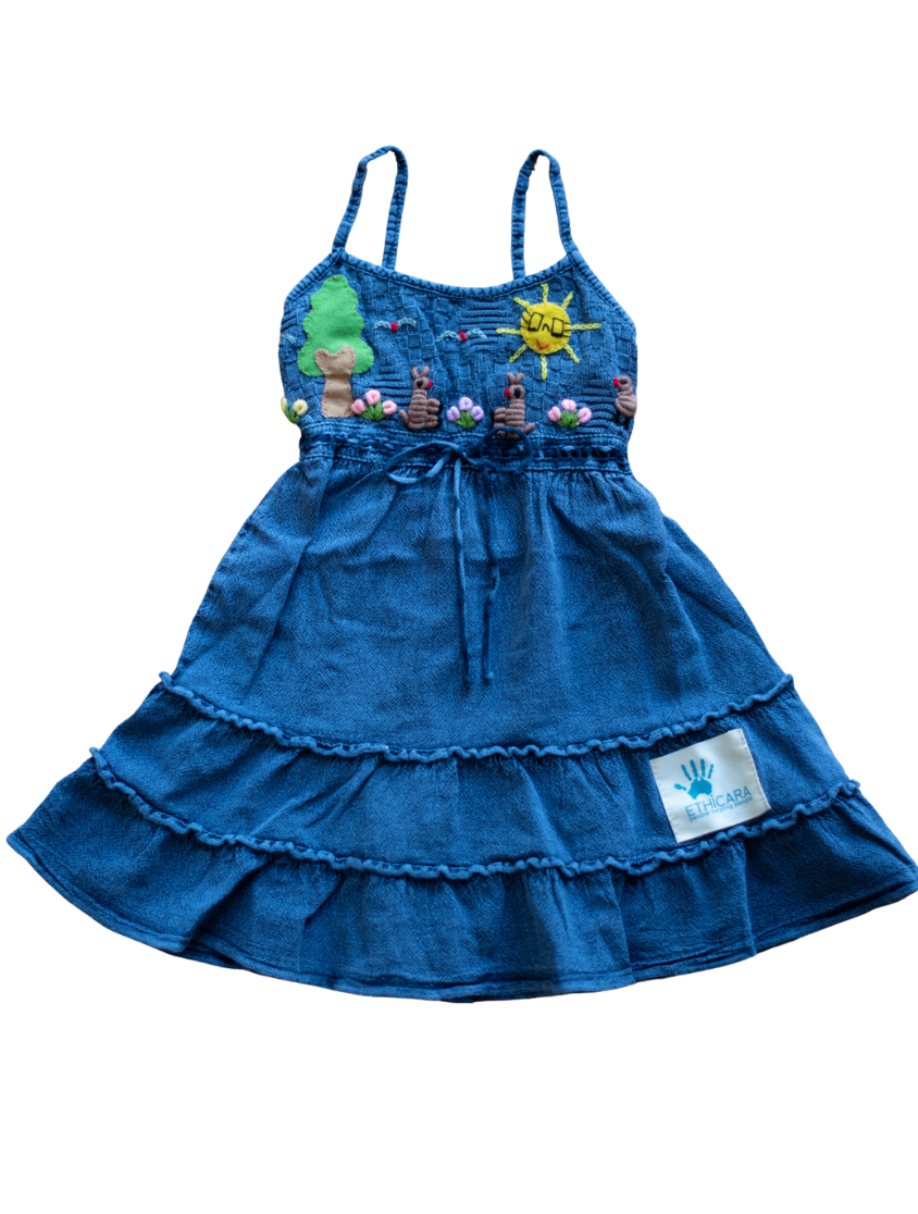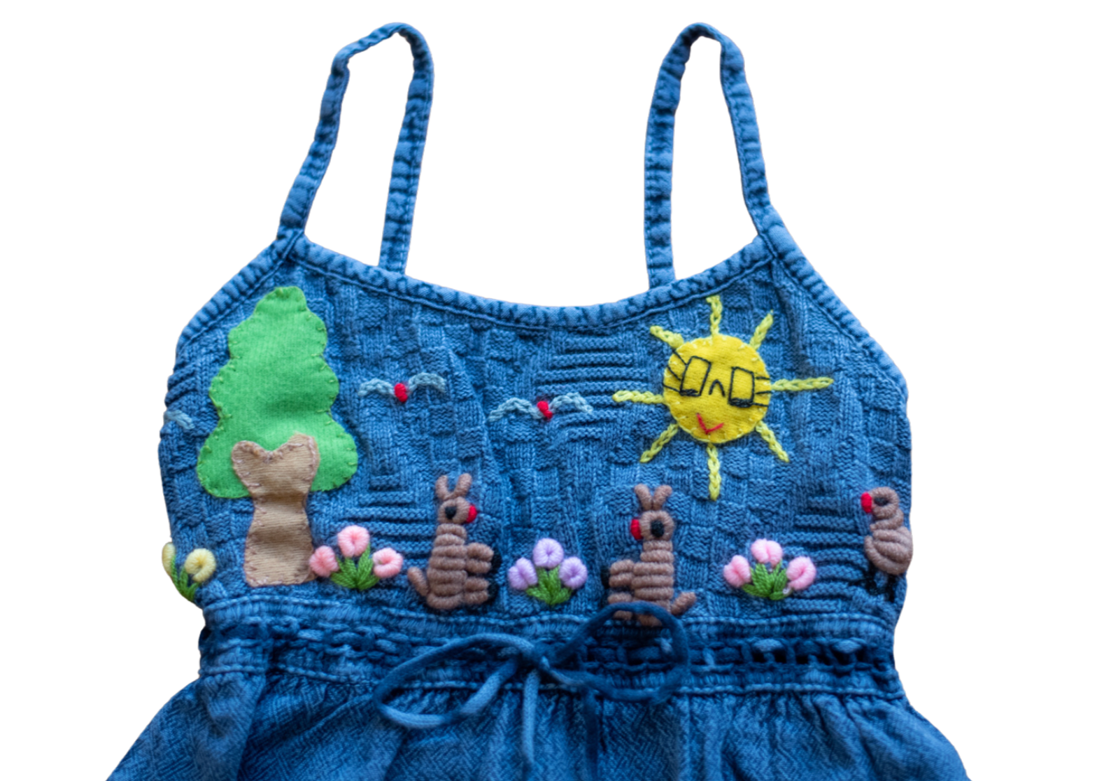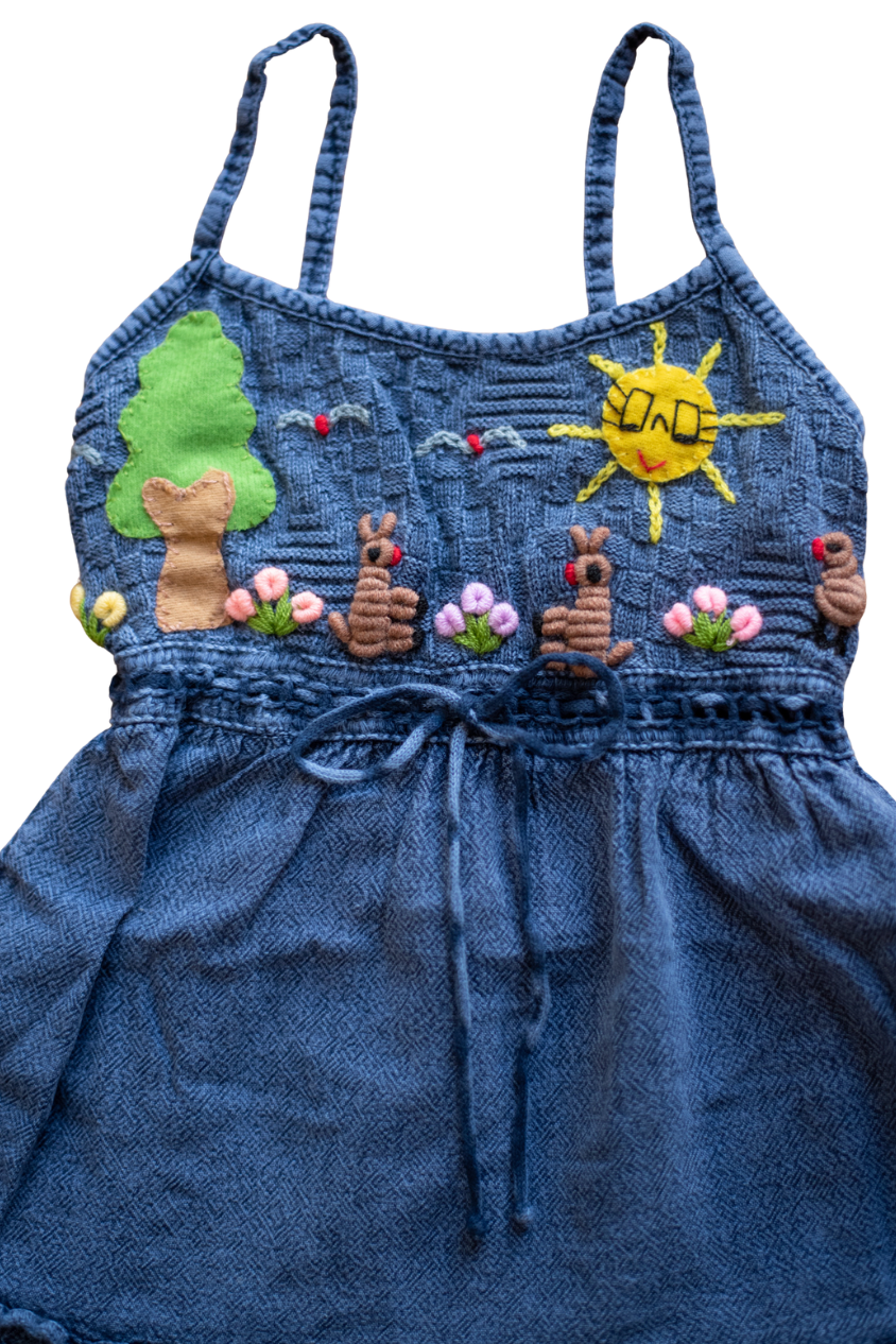 The Primavera (Forest) sleeveless dress is a celebration of the wild beauty found in Australia's heart. Adorned with a captivating array of hand-stitched Australian animals – perhaps a shy koala peeking from a eucalyptus, or a bounding kangaroo, all nestled amongst native flora – this dress invites little ones into a world of natural wonder. Designed for unrestrained movement and sun-kissed days, its breathable Peruvian cotton ensures she stays comfortable and cool, whether exploring the backyard or dreaming of distant forests. Every intricate detail is a testament to the skilled Peruvian artisans who weave stories of nature and heritage into each thread, creating an heirloom piece that truly comes alive with every twirl.