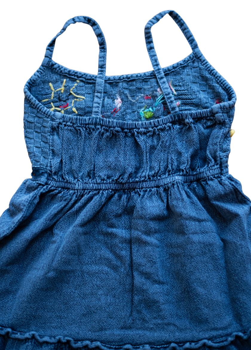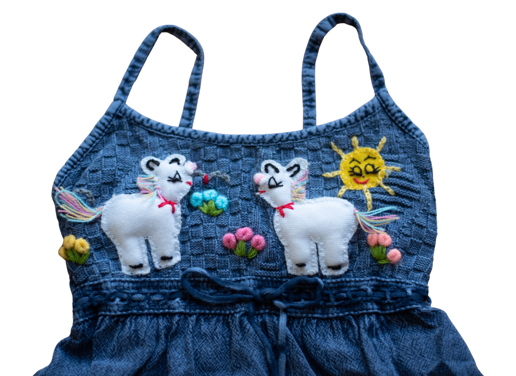 Let her imagination sparkle and soar with the Primavera (Unicorn) sleeveless dress! This truly enchanting piece brings a world of magic to life with its delightful hand-embroidered scene: two elegant unicorns, surrounded by a scatter of cheerful flowers and bathed in the glow of a beaming sun. Crafted from our famously soft and breathable Peruvian cotton, this dress is designed for ultimate comfort during whimsical tea parties, daring quests, or simply dreaming under a clear sky. Its sleeveless style allows for boundless freedom of movement, perfect for every magical leap and graceful twirl. Each stitch is a tiny wish, carefully woven by Peruvian artisans, creating a dress that’s as unique and wonderful as her own dreams.