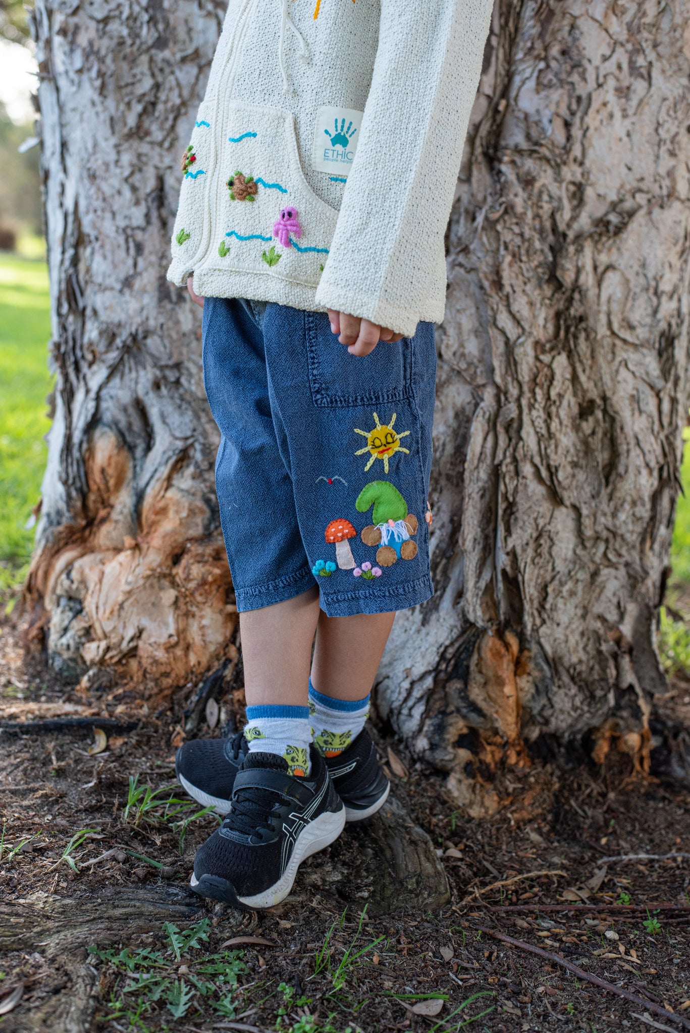 Little Explorer's Gnome Shorts | Hand-Embroidered Play | Ethicara Australia