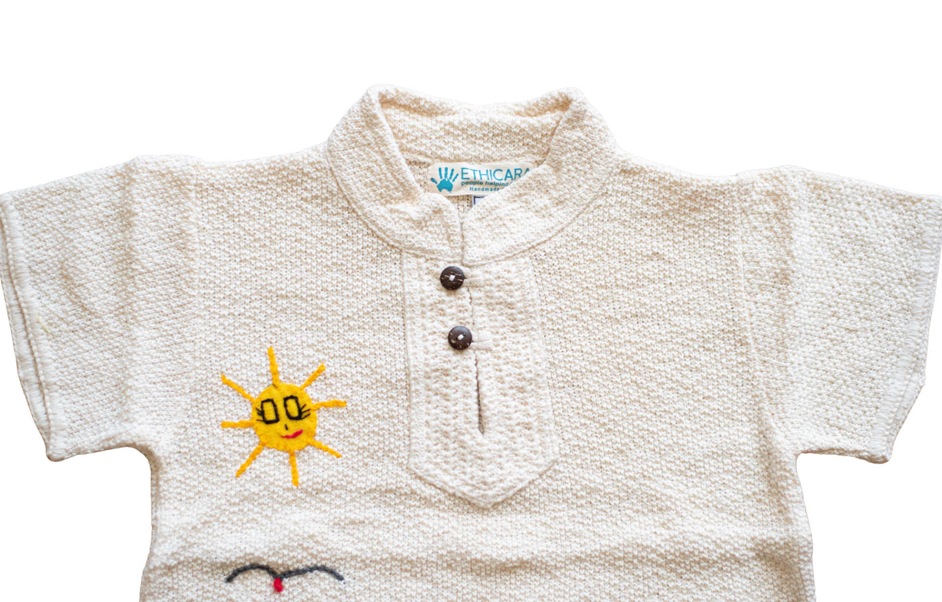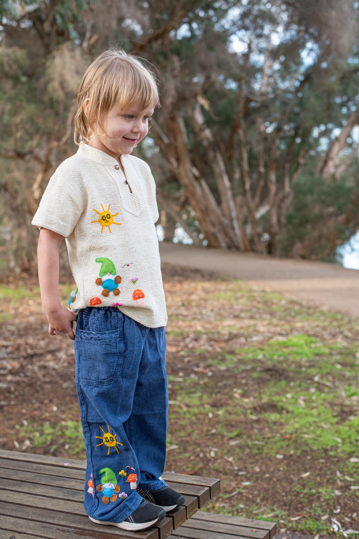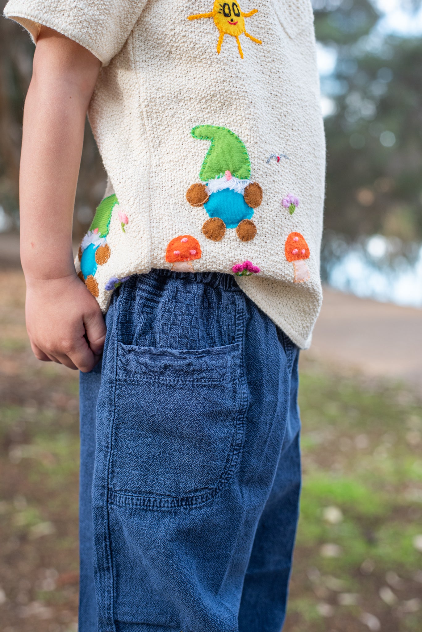 The Luigi (Gnome) t-shirt is a wondrous companion for every little adventurer's journey into their own enchanted garden. Charming hand-embroidered garden gnomes peek out, ready to inspire imaginative play, whether they're exploring backyard nooks or creating their own fantastical tales. Crafted from buttery-soft Peruvian cotton, this shirt is incredibly comfortable and breathable, perfect for all their playful escapades. Each gnome is hand-stitched with care by Peruvian artisans, infusing the garment with unique artistry and upholding fair-trade practices.