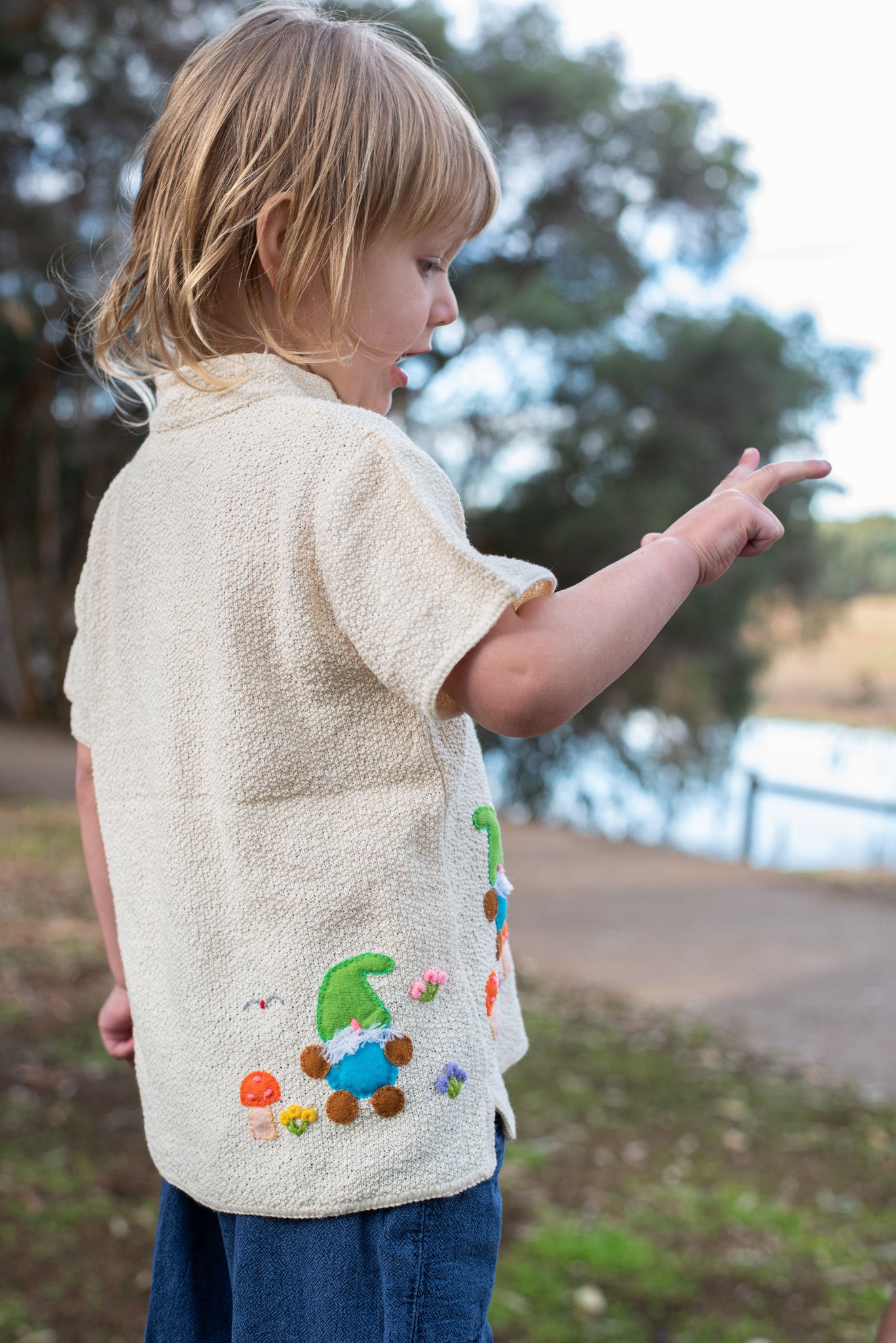 Enchanted Garden T- Shirt | Hand-Embroidered Gnome Design | Ethicara Australia