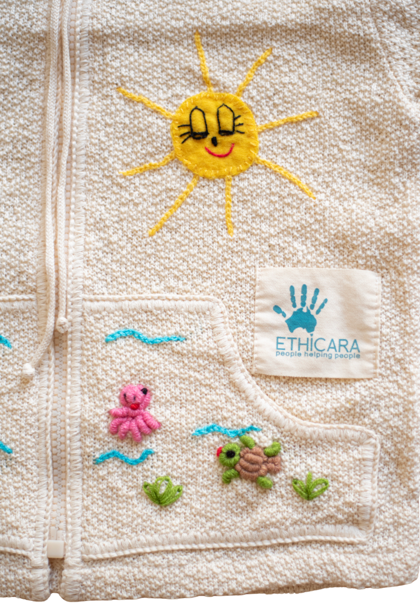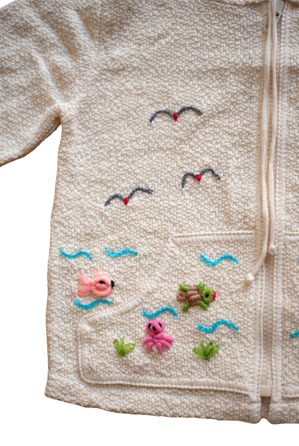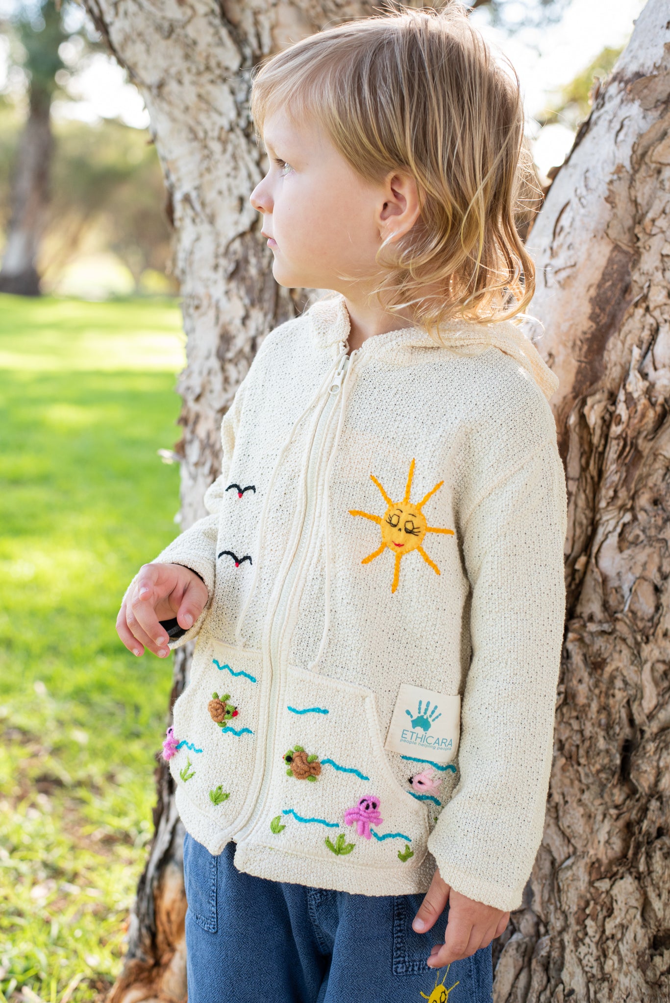 Brave the waves in style! This ocean-themed jacket features a hood with secret sea creatures, crafted from ultra breathable Peruvian cotton. š§ļøš