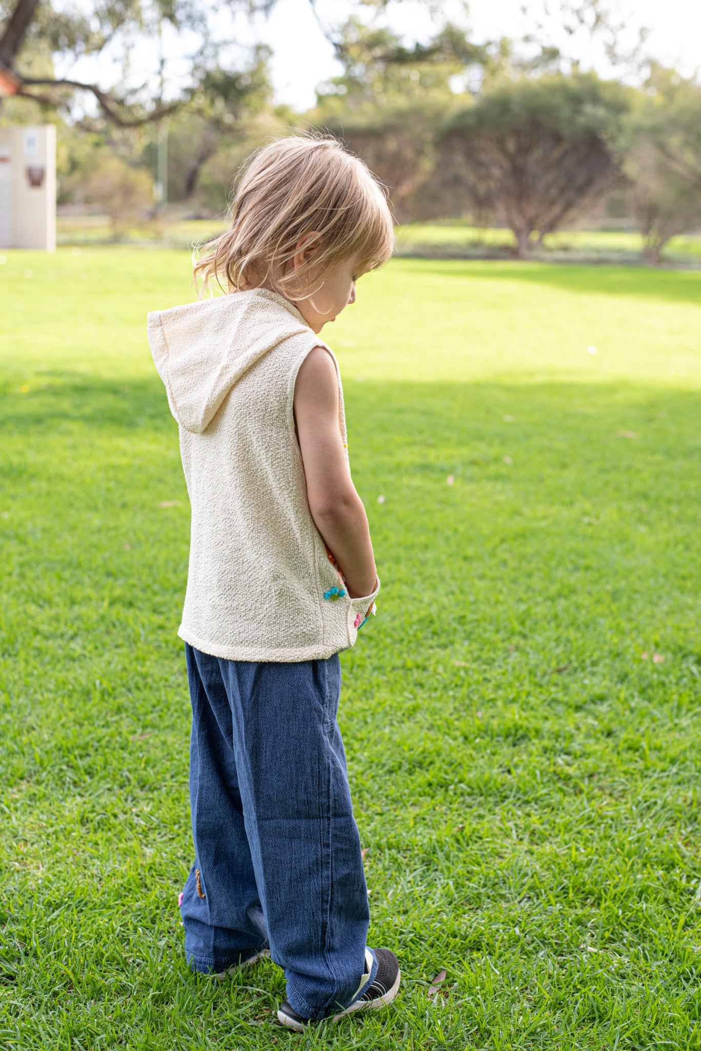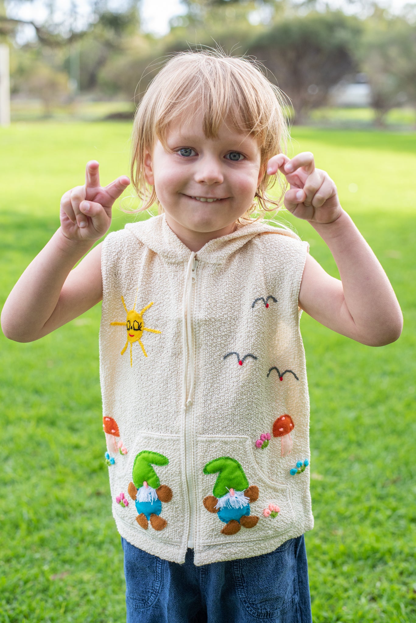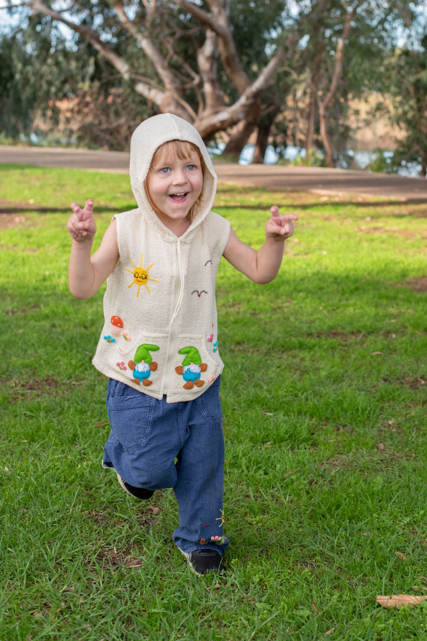 Enchanted Garden Hooded Vest | Hand-Embroidered Gnome Design | Ethicara Australia